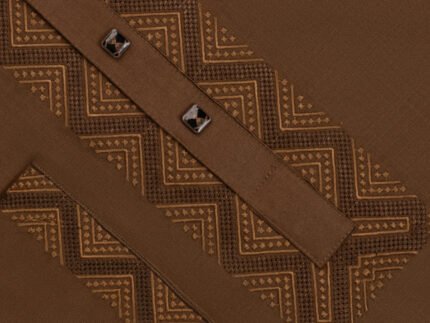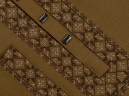 Design: Elegant embroidery decorates the collar, overlay placket, and buttoned cuffs, adding a touch of sophistication.