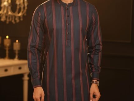 Design: Elegant Karchupi decorates the collar and overlay placket, adding a touch of sophistication.