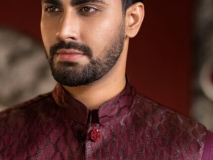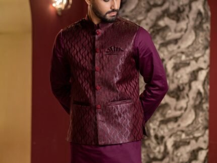 Crafted with refined detailing and a regal sensibility, this Ethnic Koti embodies the timeless elegance of Bengali tradition. Designed to elevate festive and formal ensembles, it features a structured silhouette with premium fabric that offers both comfort and sophistication. Intricate finishes and thoughtful tailoring make it an ideal layer over panjabi or kurta, adding depth and distinction to your look. Perfect for weddings, celebrations, and special occasions where heritage meets modern refinement.